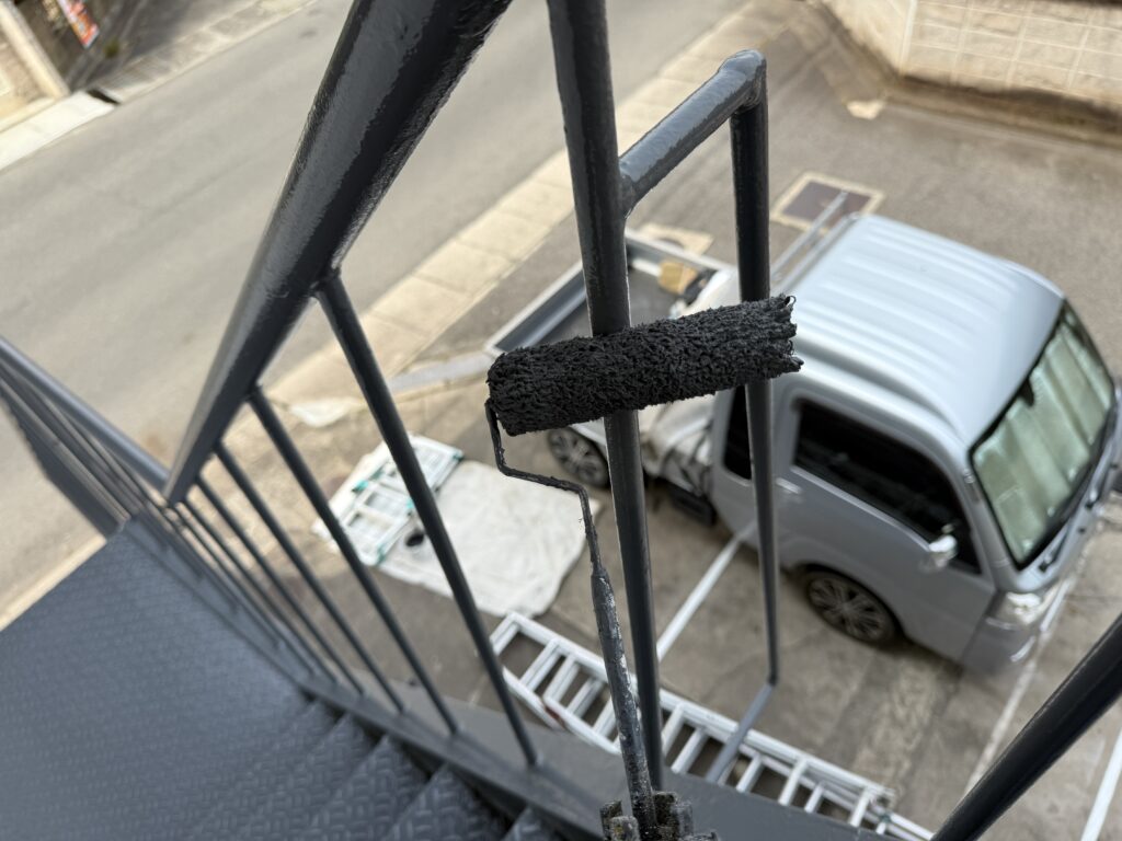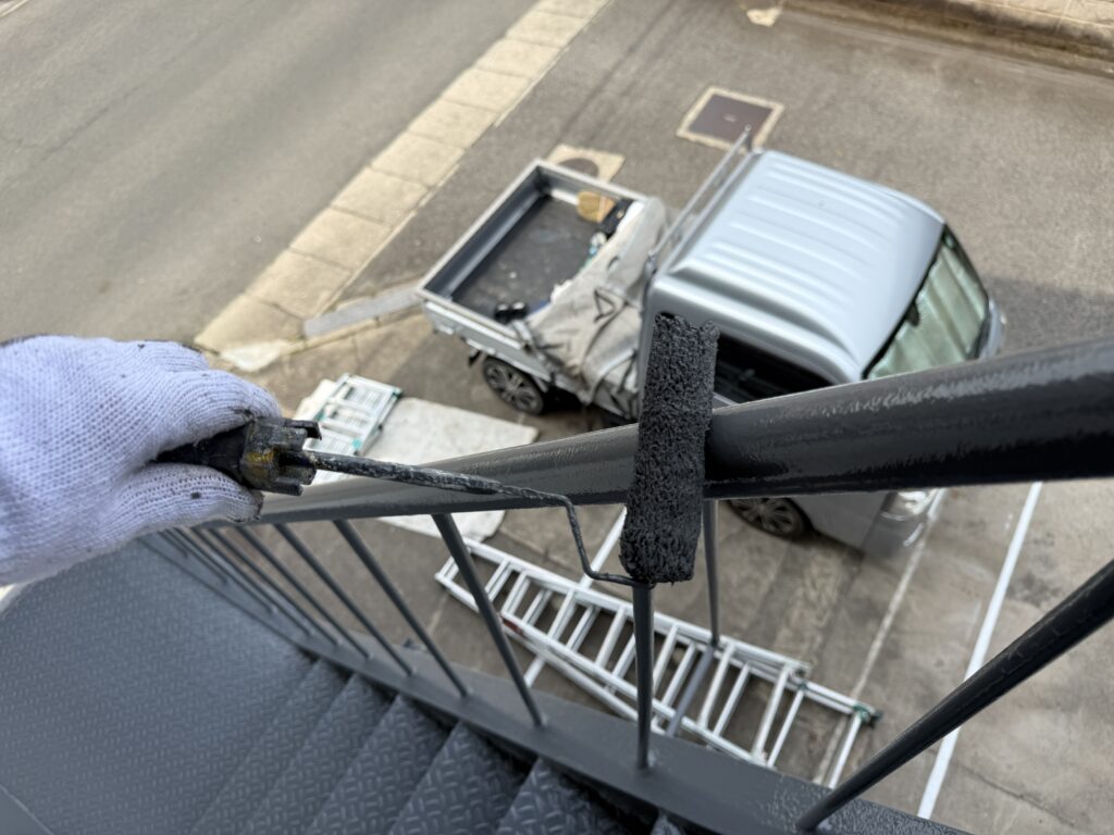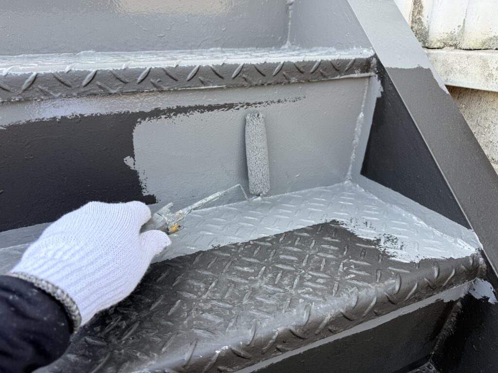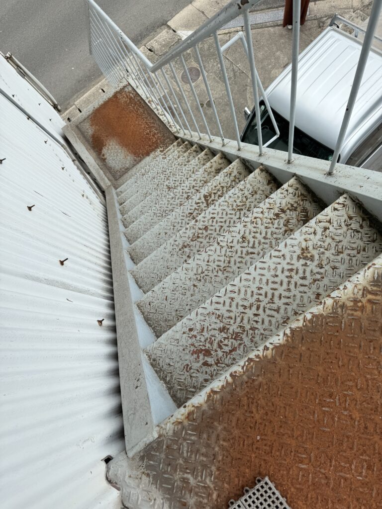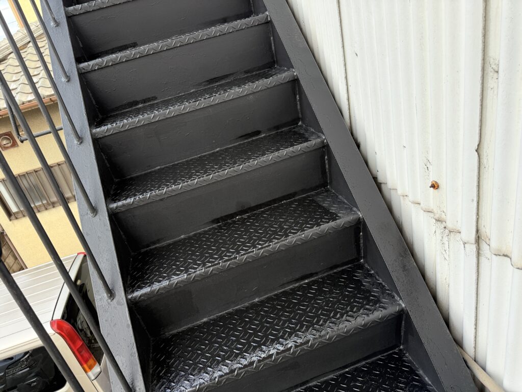 【福山市】階段鉄骨塗装工事|しっかりとした下地処理と丁寧な塗装で高耐久な鉄骨階段
