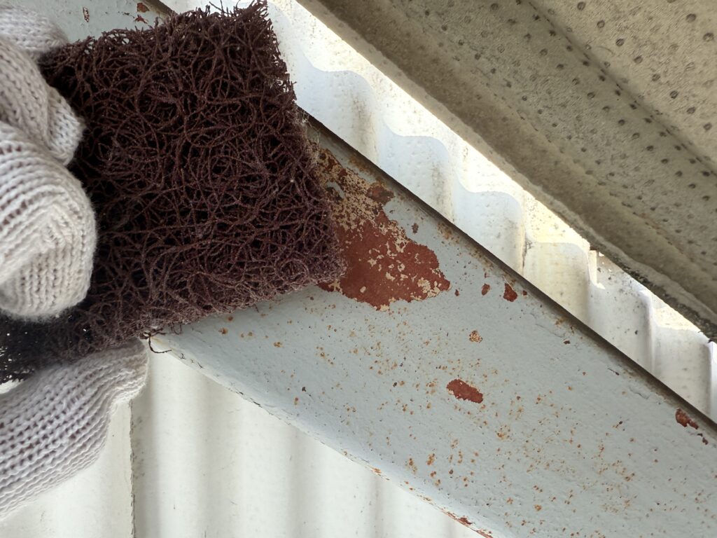 大きく劣化が進んではいませんでしたので、全体の錆や脆弱部分を研磨処理後に塗装でメンテナンス可能と判断しました。